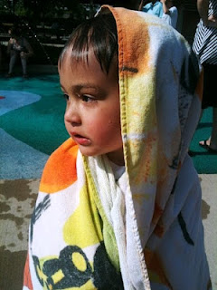 The second graders at Olivia’s school earned a pizza picnic and afternoon of water games for being second graders at Olivia’s school. (Actually I think it was for collecting box tops or can tops or something like that.) Family members were invited to dine with the kids for lunch, and many of us stuck around for the first round of games.